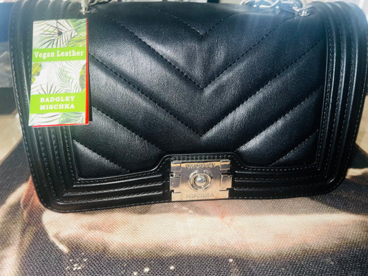 Badgley Mischka Mischka Black Quilted Leather Crossbody Bag with Silver Lining