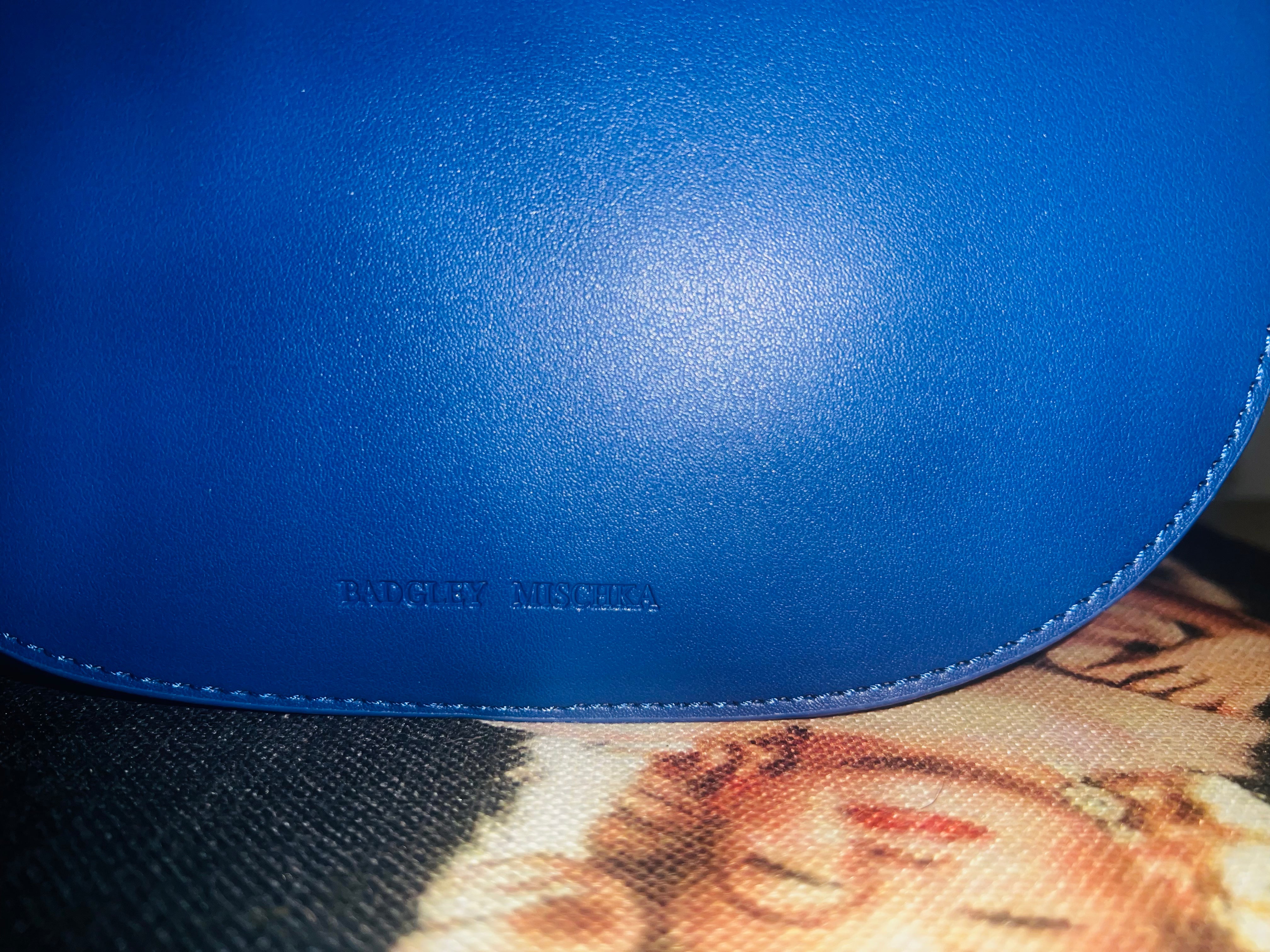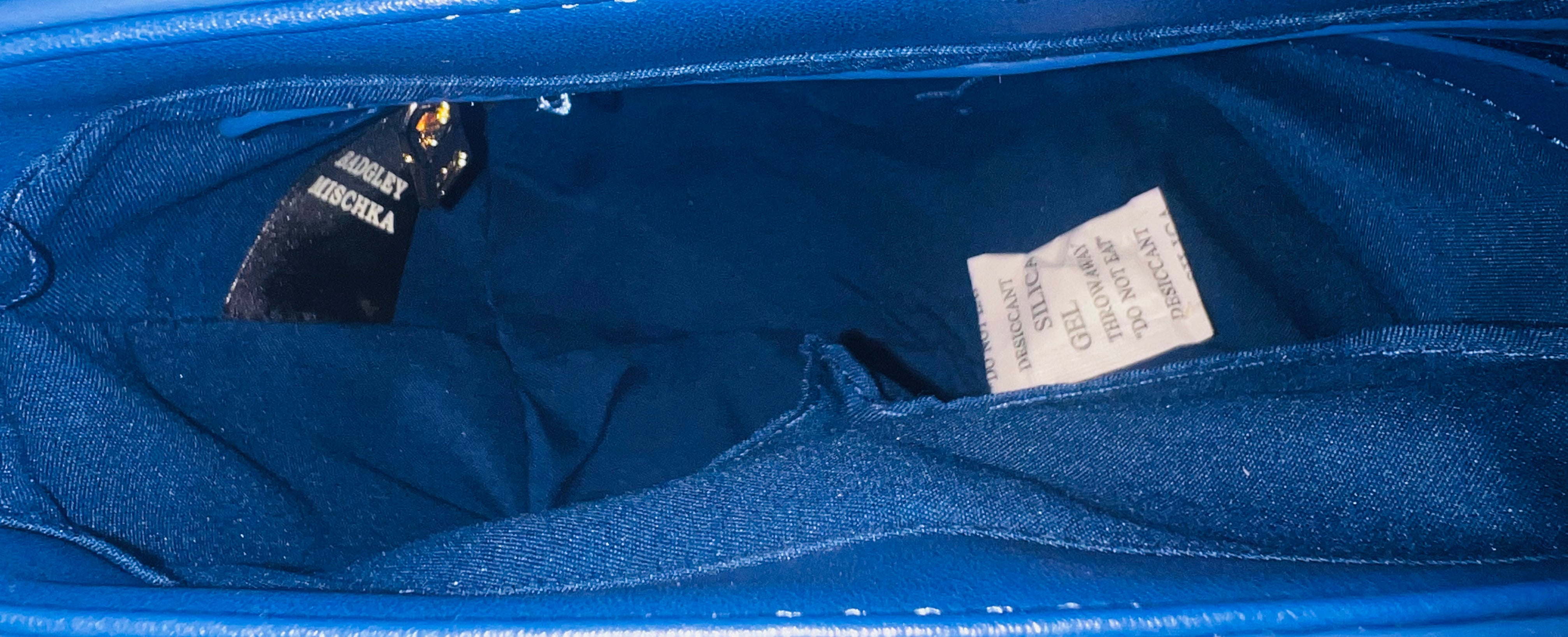 Badgley Mischka Blue Leather Crossbody Bag with Gold Lining