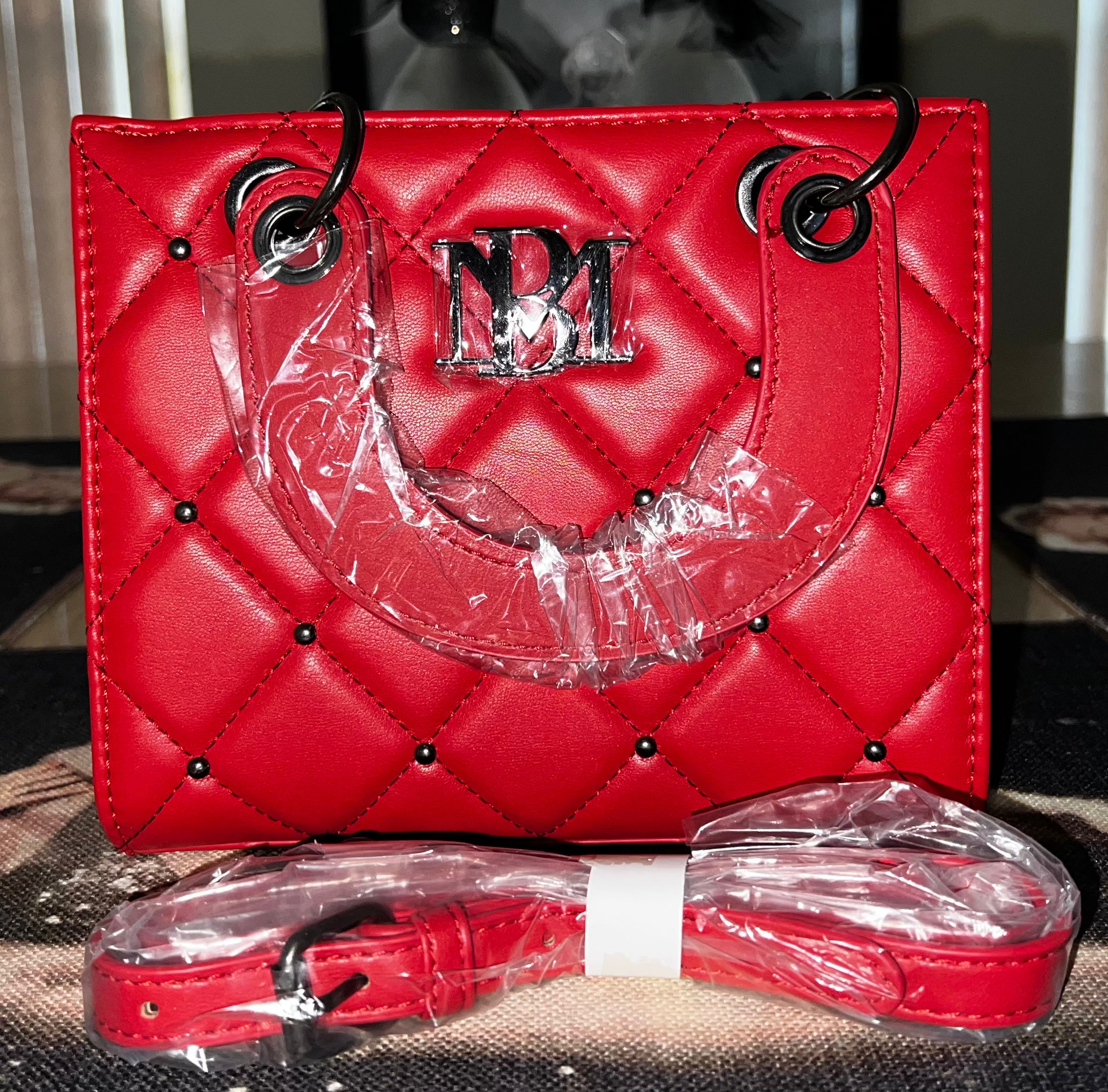 Turn up the heat with the Badgley Mischka BM4153 Red Quilted Studded Crossbody Bag — a fiery, fashion-forward designer piece that demands attention. Crafted from faux leather with a bold red exterior and edgy stud accents, this small crossbody bag is the perfect blend of glamour and attitude.