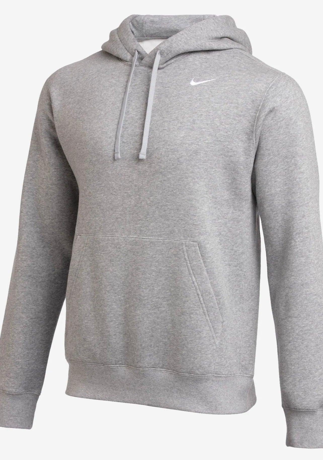 The Nike Team Club Fleece Hoodie Hooded Sweatshirt in gray is a classic and versatile piece perfect for the winter season. Made from a comfortable cotton blend fleece fabric, this pullover hoodie features a collared neckline and long sleeves for added warmth. The embroidered Nike logo adds a touch of style, while the hooded design offers extra comfort and convenience.