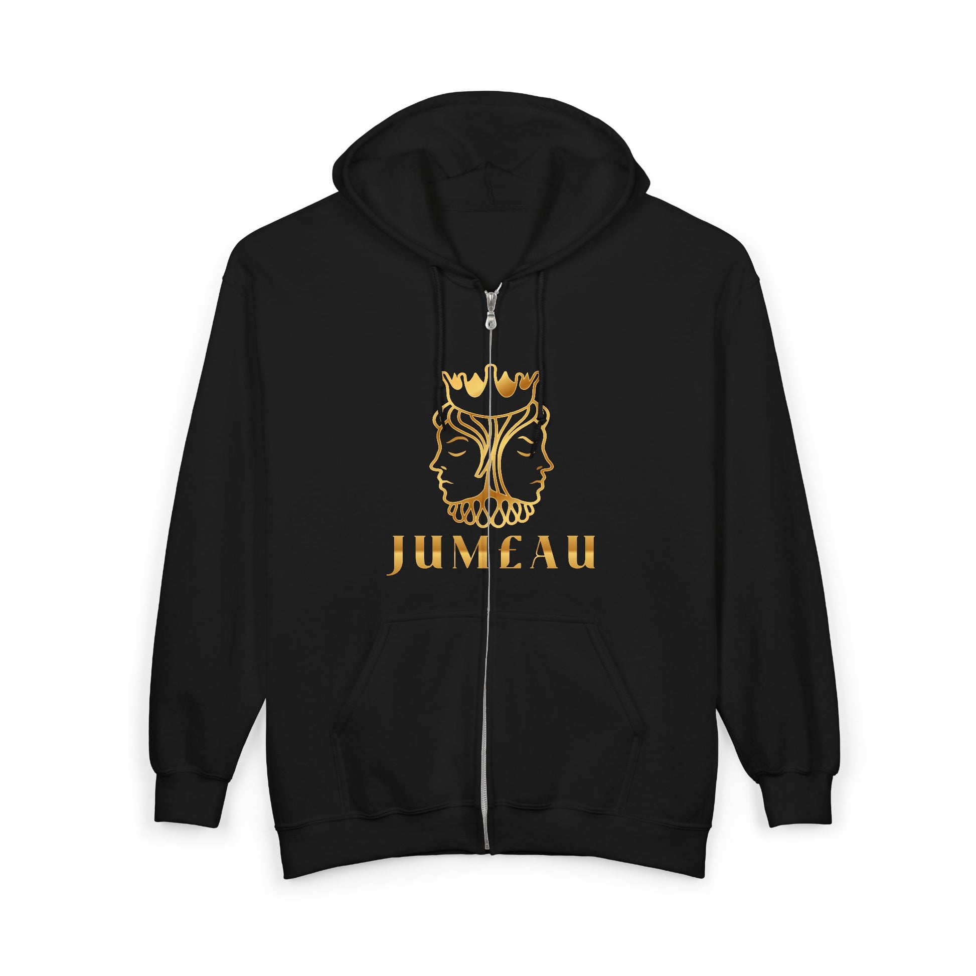 This zip-up hoodie carries quiet confidence — soft, slightly heavy fabric wrapped around a bold, gold-tone emblem that reads “JUMEAU.” The full-zip front and roomy pockets make it easy to move through mornings or late-night walks. The embroidered-ready chest area and clean, seam-free body give the piece a refined, crafted look. Wear it zipped for a sharp silhouette or open for layered comfort; the drawstring hood tucks warmth in when wind hits. It feels like a trusted companion for chilly commutes, creative nights, and slow weekends spent exploring the city or a favorite café.