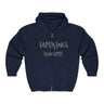 This zip-up hoodie brings quiet confidence to everyday wear. Cut from a sturdy 50/50 cotton-poly blend, its medium-heavy fabric holds shape while feeling comfortably warm. The front zipper and roomy pockets keep hands and essentials close. Subtle, hand-lettered text across the chest reads like a personal mantra — worn alone it reads bold, layered it adds personality without shouting. The tubular knit construction creates a clean, seam-free silhouette that drapes naturally. Finished with a drawstring hood, ribbed cuffs and hem, and optional small embroidery on the left chest for a refined detail, this hoodie moves from morning walks to late-night studio sessions with ease.